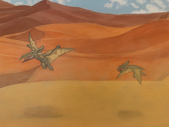 Эту картину она нарисовала мне вдохновившись игрой в браузере Chrome, добавила пасхалки в виде метеорита и змейку из одноименной игры.