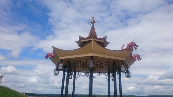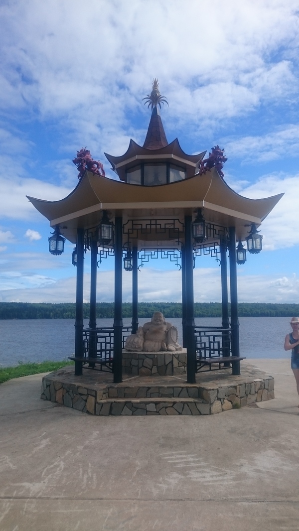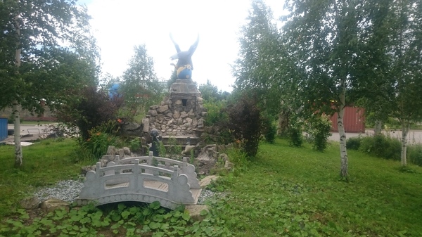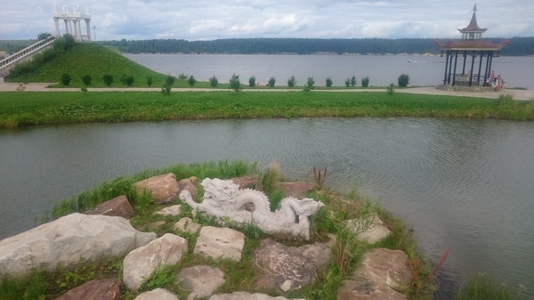 В центре одного из озер есть островок, к нему можно пройти по мостику, на этом острове главенствует дракон.