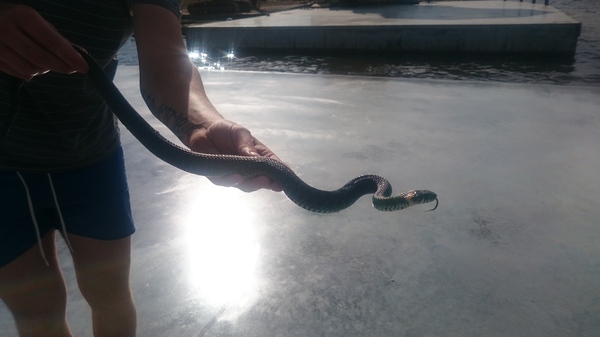 Выловили из воды  местного жителя, никак не мог забраться по бетонке на берег.