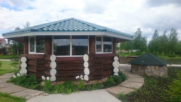 Есть беседка, можно посидеть рядом с ней за каменным столом или внутри.