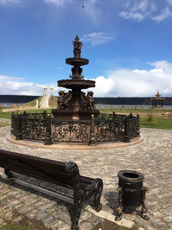 За заднем плане, слева, мы видим статую орла на постаменте - это водопад, к сожалению пока не работает, ведутся очистные работы в месте забора воды.