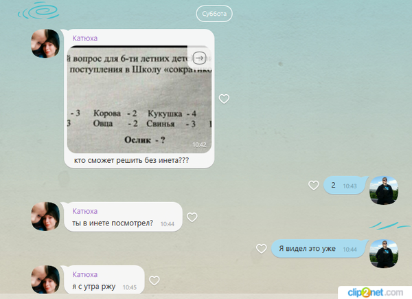 В Вайбер, в общий диалог друзей, братьев и сестер, приходит данная загадка.