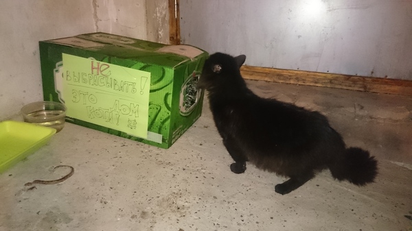 Вынес на улицу. Кот с ним познакомился, но лезть в него пока не стал.