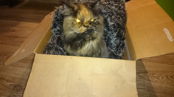 Утром котейка довольный спал в коробке