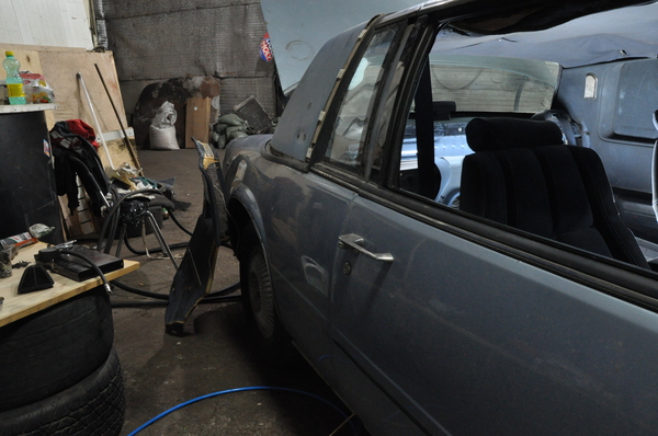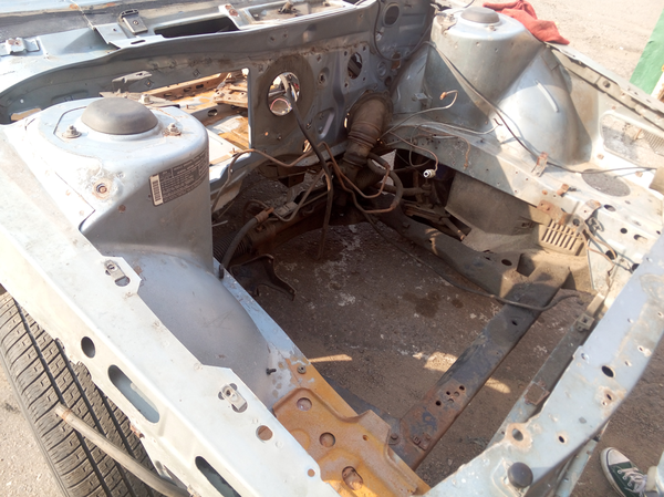 Как итог - машина разобрана полностью, остались только колеса и элементы рулевого управления, что бы удобно было ее перекатывать от жестянщика к маляру.