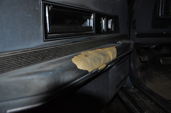 Салон тоже потрепало, это однозначно полный перешив. Боюсь представить, каким голодным был водитель, что пришлось поступать так с обшивкой двери: