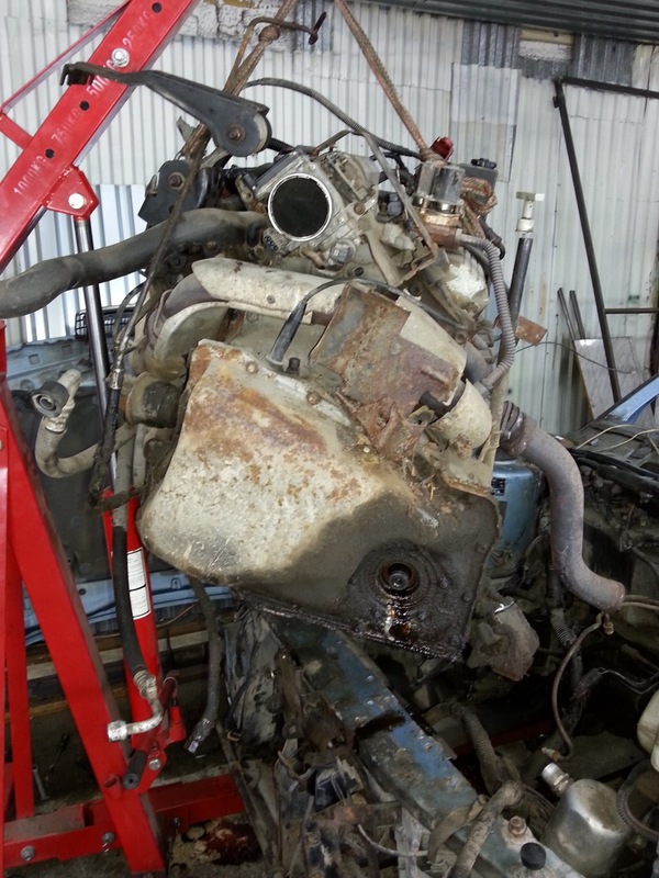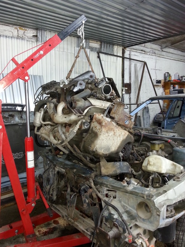 Сняли так же и двигатель с коробкой(к сожалению момент снятия коробки я не сфотографировал, но там, поверьте, ничего интересного):