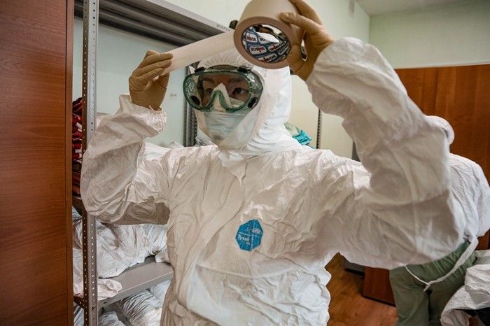 Врачи Якутской республиканской клинической больницы и Детской инфекционной клинической больницы работают круглыми сутками, спасая людей от коварного вируса. Фотограф ЯСИА побывал в чистой зоне и запечатлел, как готовятся врачи ко входу в красную зону, где проходят лечение якутяне.