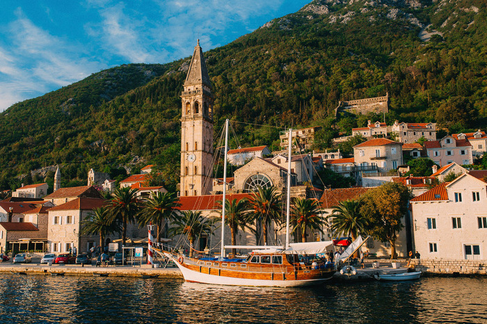↑ Набережная города Пераст. Церковь в центре кадра - церковь Святого Николая. Можно подняться по лестнице в башню, за 1 евро, работает с 10 до 17 (вроде бы). Вид из башни того стоит. Координаты: 42.485870, 18.698461