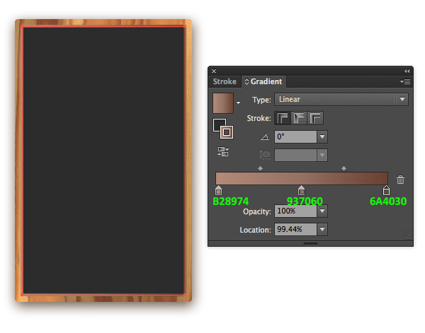 Укажите прямоугольнику обводку толщиной в 3,5pt и укажите обводке градиент как показано ниже.