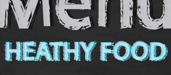 Копируйте (Ctrl/Cmd + C) слова «Healthy food» и вставьте их на задний план (Ctrl/Cmd + B). Укажите тексту цвет #00ADEF и чуть сместите его вправо.