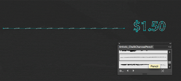 Теперь продолжим, используя шрифт «Myriad Pro», чтобы создать пунктирную линию и указать цены.