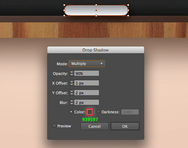 В меню выберите Effect > Stylize > Drop shadow (Эффект>Стилизация>Тень) и укажите следующие параметры: