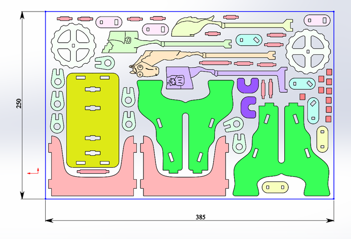 Весь раскрой уместился на листе 385х250мм.