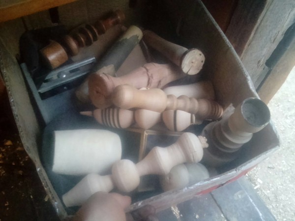 Ну и собственно коробка с готовой продукцией и прочим хламом, точил ещё ручки дверные, много ручек, но фоток нет - полено на которое фотографировал, сломалось.