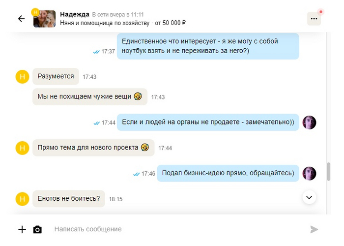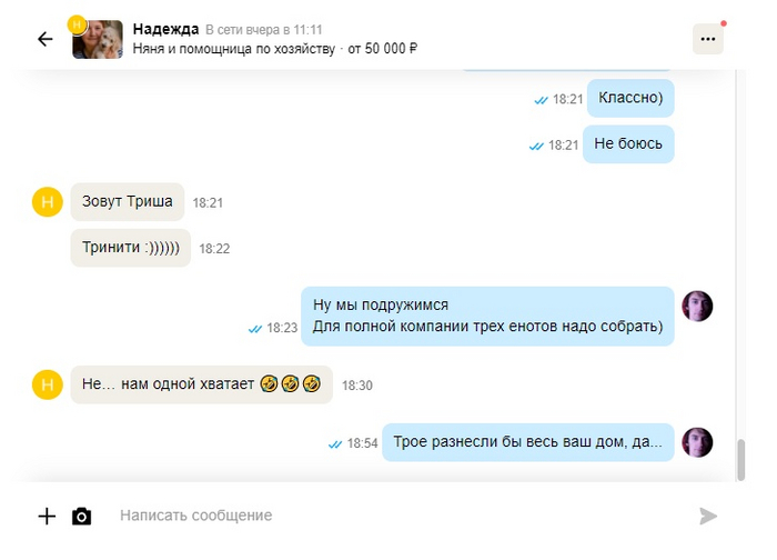 Еще и очень громко и с матами эта же Надя наорала на меня за то, что я потратил всю горячую воду в душе. Хотя во-первых — мне самому не хватило помыться, во-вторых — да, она перед этим писала в чате — душ не занимать.