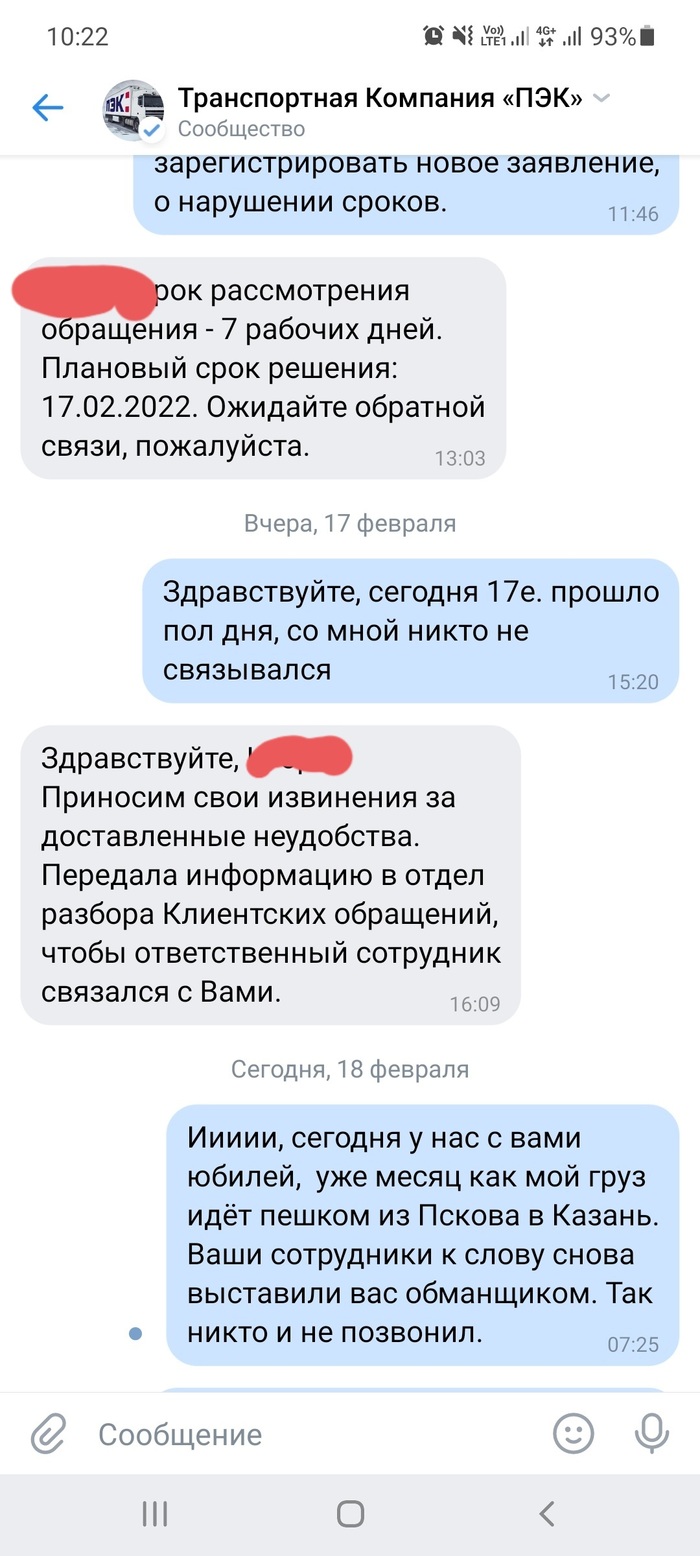Сегодня у нас с компанией пэк юбилей. Сегодня месяц как мой груз идёт пешком из Пскова в Казань. У нас было все, и надежды, и разочарования, были обманы и предательства. Теперь пришла стадия признания - ПЭК, как транспортная компания - говно.