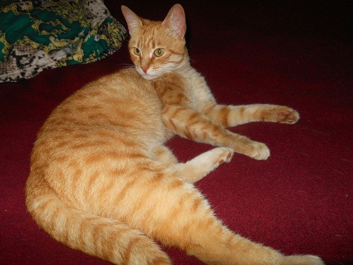 Кот, по всей видимости, домашний - кастрирован, ест корм, насчёт лотка ничего сказать не могу, к сожалению. Ласковый очень, но трусишка, в подвал не уходит, как местные улично-дикие коты. Мурчало исправное. Фоткаться не любит. Жалко безумно, забрала бы сама, но нас потом вместе выселят(( Пожалуйста, если кому-то нужен рыжий друг домой, заберите котея. Он хороший.