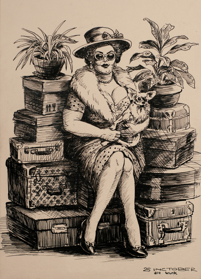 Только потом вспомнилась классика про Даму с чемоданами и маленькой собачонкой. Пришлось рисовать вторую картинку)))