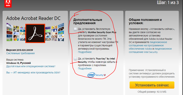 Дальше скачивается инсталлятор который скачивает и устанавливает Adobe Acrobat Reader и все. Никаких яндексов, мылору и другого говна. Но человек же "вчера ставил и там был гавнояндекс".
