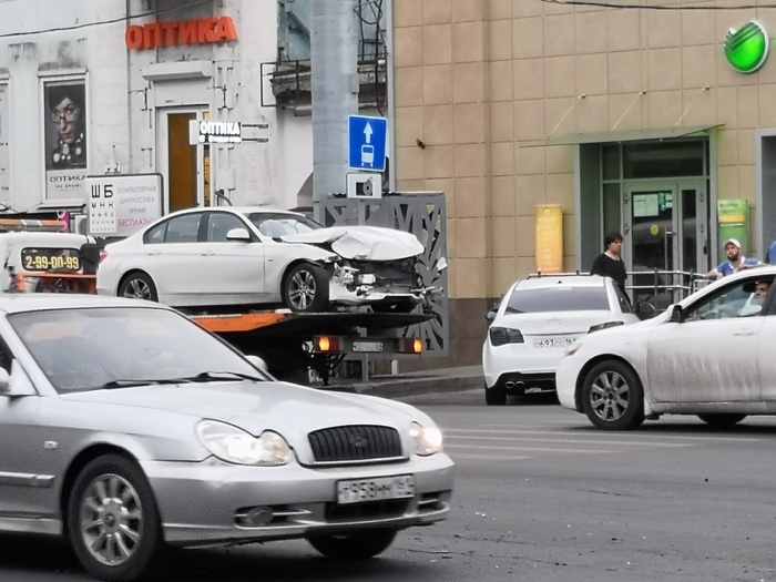 Судя по записи, сделанной регистратором, установленном в автомобиле BMW, его водитель начал движение на запрещающий сигнал светофора.