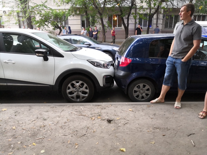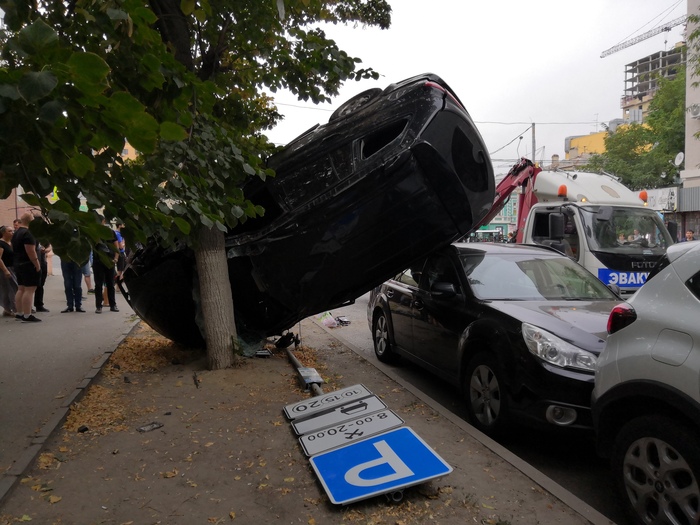 Выехав на перекресток, он врезался в SsangYong. Протараненное авто, кувыркаясь, вылетело на тротуар, снесло человека и столкнулось с припаркованными Renault, Hyundai и Subaru, остановившись на крыше у последнего.