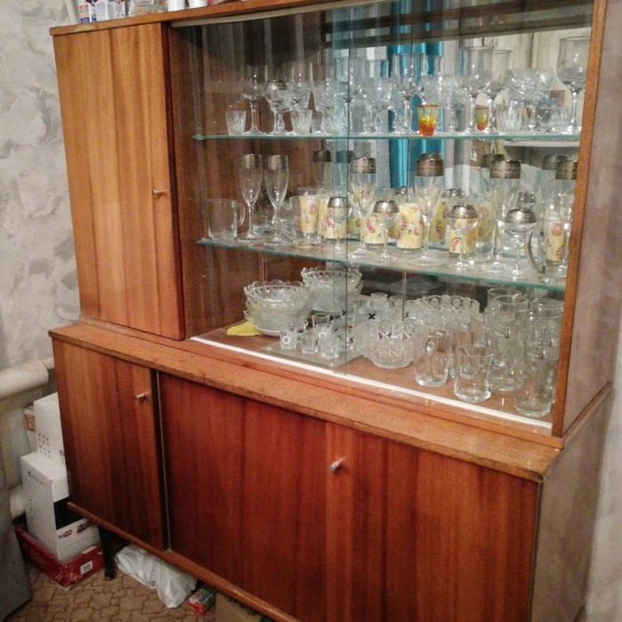 Будучи мелким пришлось отхлебнуть говница . У упоротых советских потребителей была мода на так называемые серванты. Это такой шкаф со стеклянными полками, который существует для заполнения его тарелками, стаканами и селёдочницами. В нижних полках еще тарелок персон на 50-100, вилок и ножей столовых.