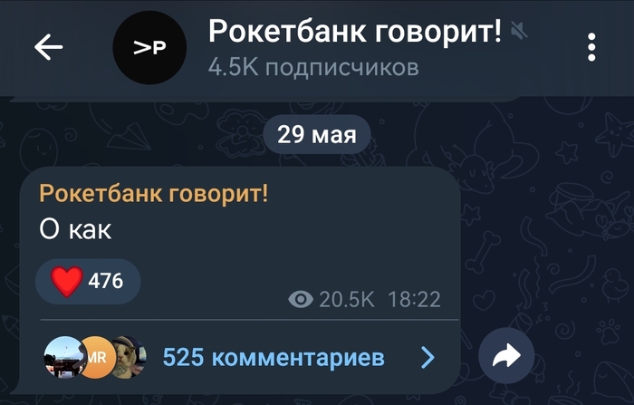 29 мая в телеграм канале рокетбанка появилось новое сообщение спустя пять лет после последнего поста.