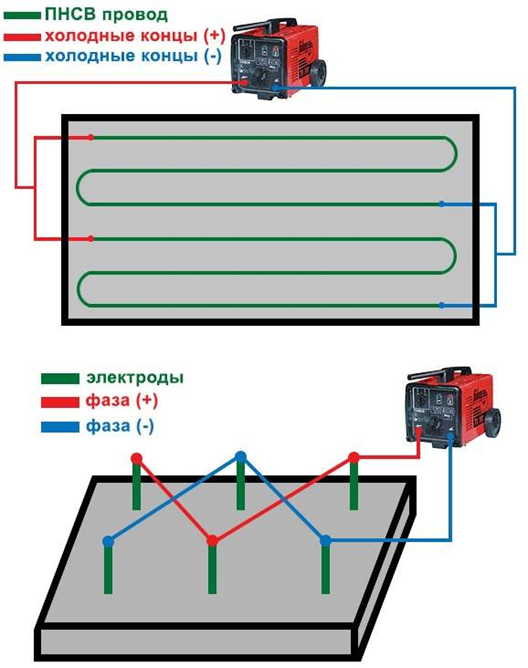 Прогрев электродами (стержневыми, пластинчатыми, струнными): Электроды погружаются в бетон или накладываются на поверхность. Эффективно, но требует точного расчета.