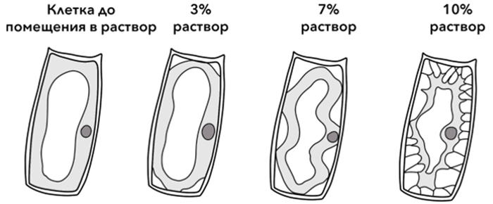 Плазмолиз — процесс отделения протопласта от клеточной стенки в гипертоническом растворе.