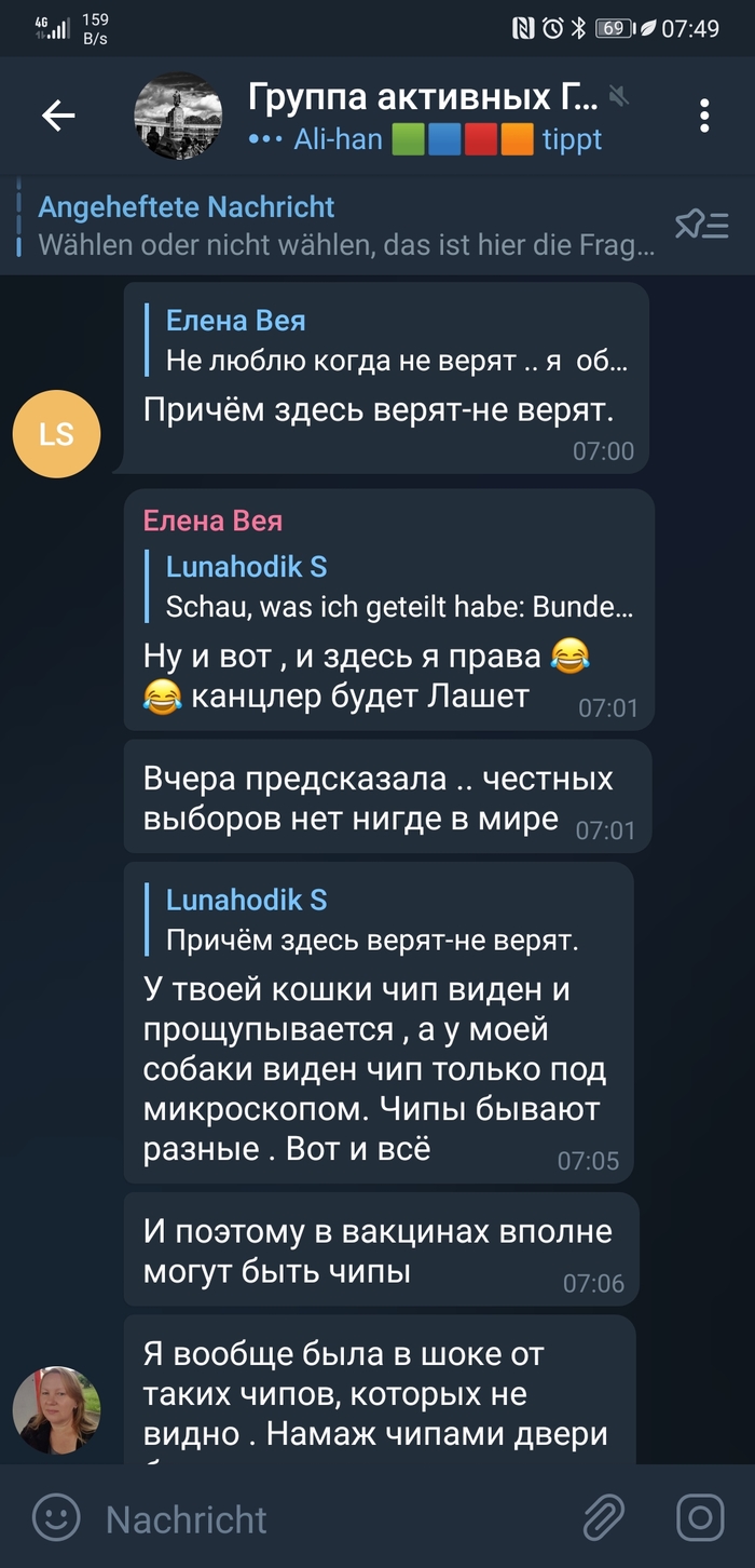 3 PoMa3aH 4 года назад Когда хорошо разбираешься в чипировании через вакцину Ведь тебе 60 и советское высшее образование.Наткнулся в одном телеграм чате.Что думаете, как много чипов в день всасывает наша кожа в общественных местах? Показать полностью 2 [моё] Чипирование Вакцина Вакцинация Теория заговора Билл Гейтс Скриншот Длиннопост 2 1 Ещё 0