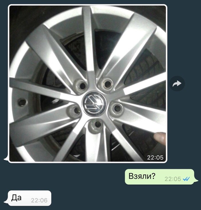 К моему удивлению, Авито достаточно быстро показал мне подобные колёса с той же маркой резины в продаже. Причём совсем не дорого, всего 17 тысяч за комплект. Понимаете к чему я, да? При стоимости одного диска в ± 25 тысяч, комплект из 4 дисков с резиной продавался за 17. Фотографии были качества "Ну такое" по-этому я не был уверен в том, что это оно. Естественно я позвонил продавцу и назначил встречу, подумав, что даже если это мои колёса, за такие деньги, пожалуй, я их куплю. К тому же он сказал, что колёса это не его, они почти новые, оригинальные и он их только перепродаёт. У него магазин. Ну то есть "профессиональный" продавец колёс не знает рыночную стоимость товара. В общем я знатно уже напрягся.