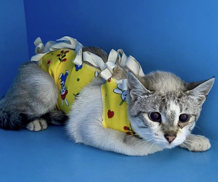 В 7 мес у нее была первая беременность, все котятки погибли от голода…
