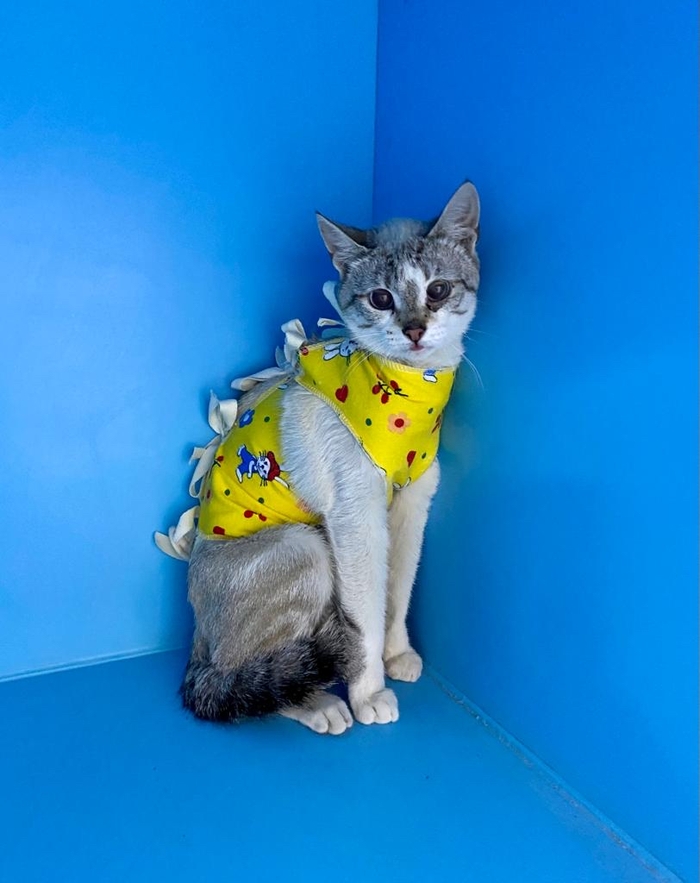 В начале этой весны, она пришла к охранникам, в надежде получить еды, худая, маленькая, голодная. Тут ее и увидела неравнодушная женщина и привезла на стерилизацию бездомышей.
