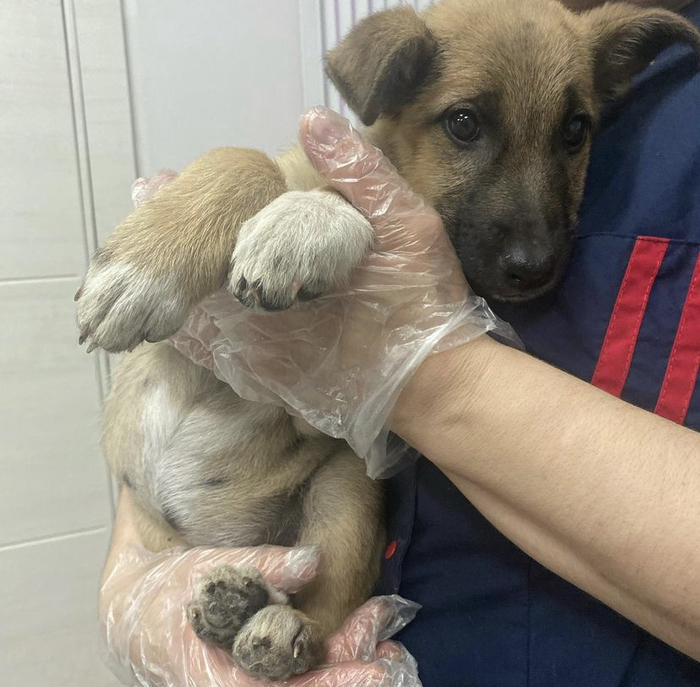 Кнопик невероятный ребенок. Только посмотрите какой нежный и как плюшевый прижался к рукам сотрудника по уходу и стремится так и заснуть… Пиивезен прямо с улицы, осмотрен врачом, сделаны первые обработки от блох, глистов и тд. Сданы анализы - все чисто. Очень худенький. Возраст 2,5 месяца, вырастет средней примерно по колено, около 20кг. По характеру очень ласковый и ручной. Руки человека для него важнее всего в мире.. на фото видно все про него… никакими словами не описать эту беззащитность ребенка…