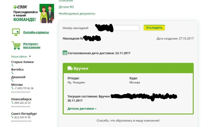 Добрый вечер, хотелось бы рассказать о такой "прекрасной" службе доставки как "CDEK", которая позиционирует себя как экспресс-доставку. "Мы оказываем людям и компаниям спектр услуг своевременной и гарантированной доставки", но в нашем случае что то пошло не так.
