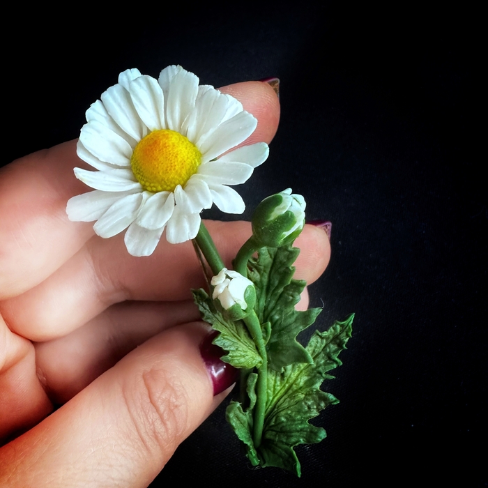 В связи с этим мне захотелось создать брошь с этим удивительным и красивым цветком. Ромашка ассоциируется с покоем, чистотой и невинностью. А вы знали, что ромашка является символом материнства, доброты и любви?