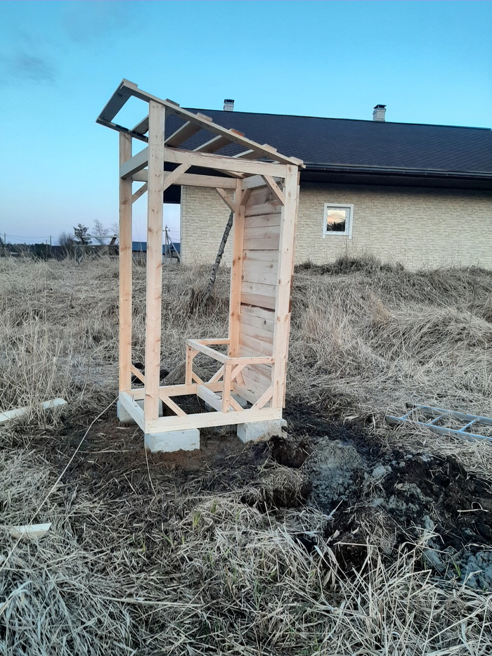 Потом понял, что я начал не с того. Купил на 8к досок, бруса и профнастил с крепежом и собрал туалет.