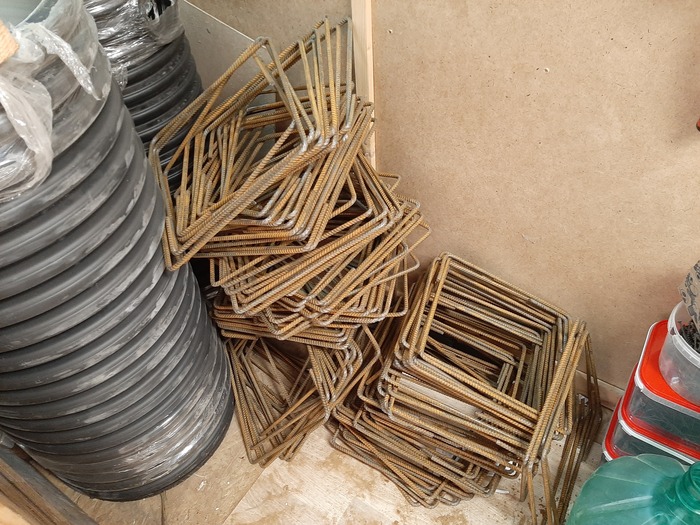 Для выгибания арматуры сделал станочек из уголка и профильной трубы, рассчитал количество хомутов и за пару часов изготовил 160 штук.