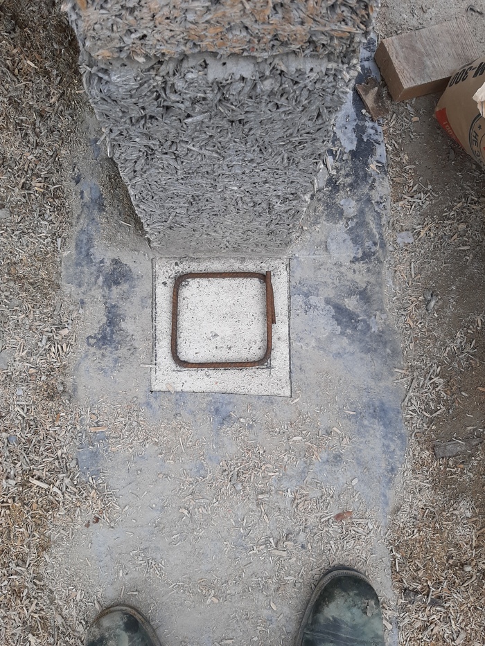 Так же гдето вычитал, что воздух для питания печи лучше брать с улицы, дабы не забирать из дома нагретый воздух. Была куплена профильная труба 60х60, сварена углом и установлена в армокаркас ростверка с выводом в зону основания печи.