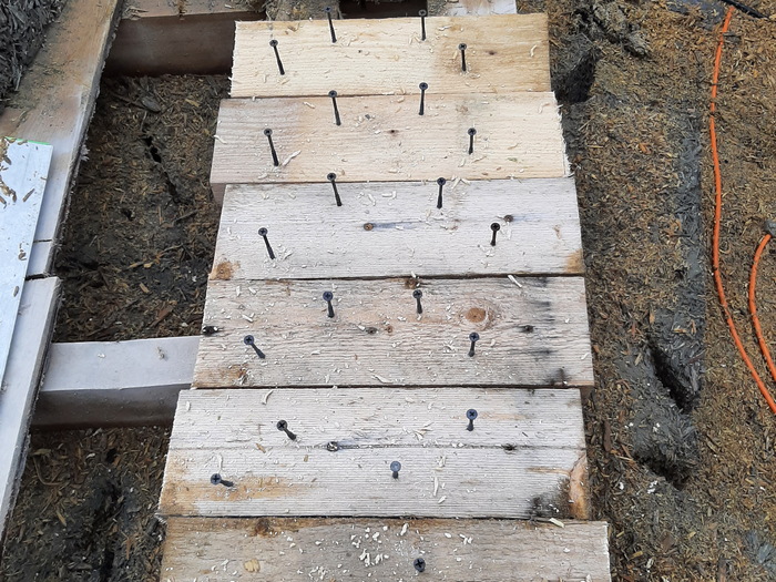 Доски оставались от опалубки ростверка, саморезы оттуда же.