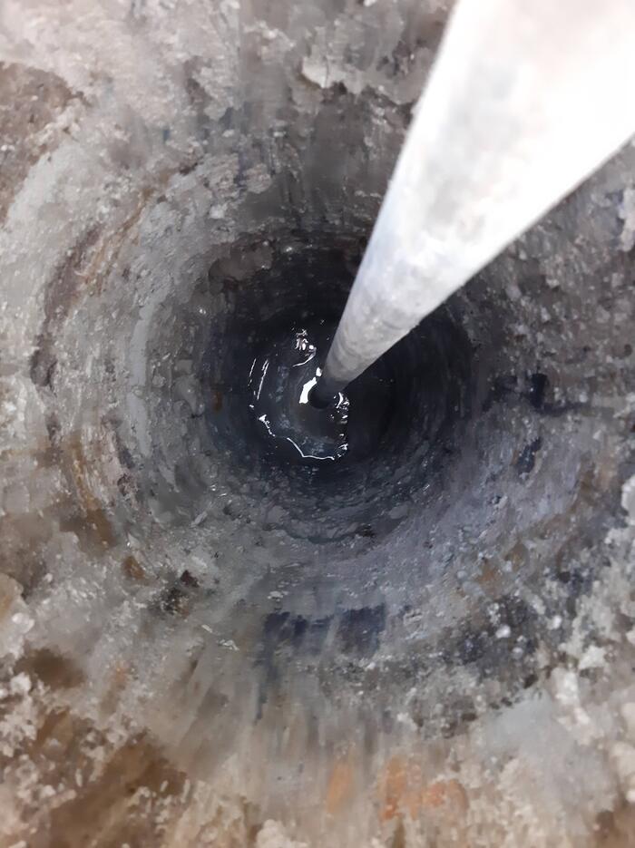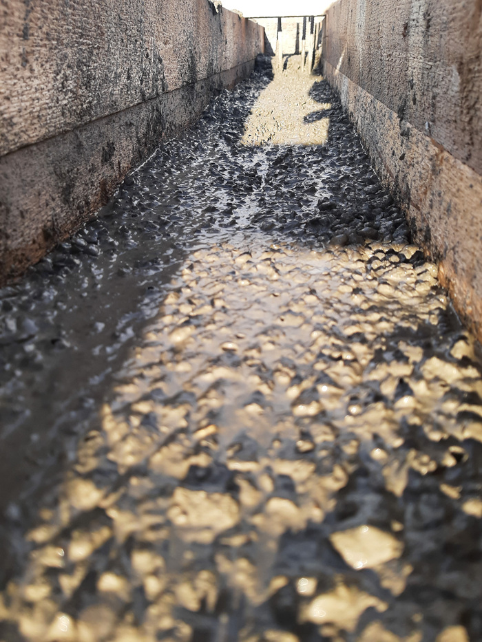 Так бетон выглядит после вибрирования. Выходит куча пузырьков, поверхность выравнивается.