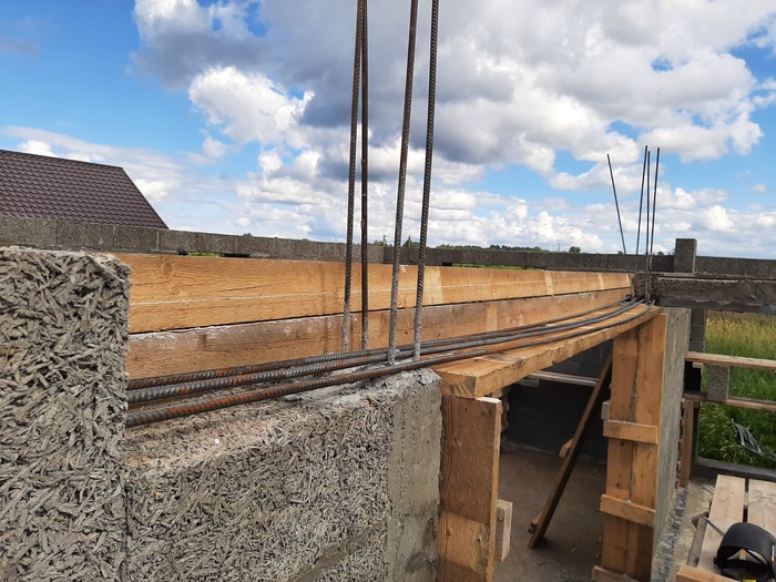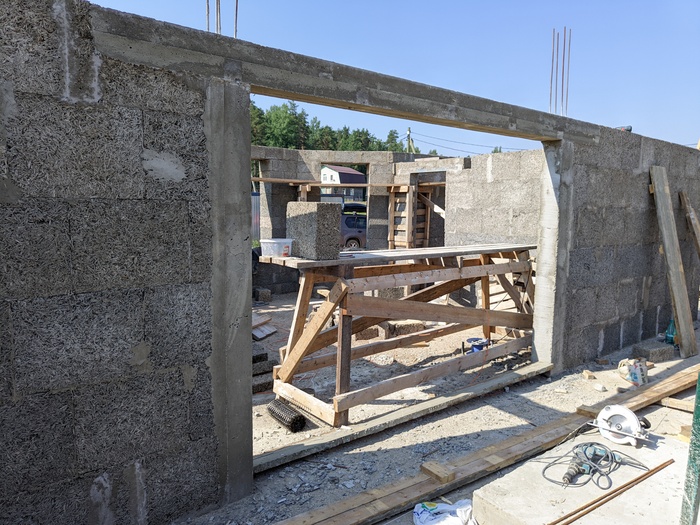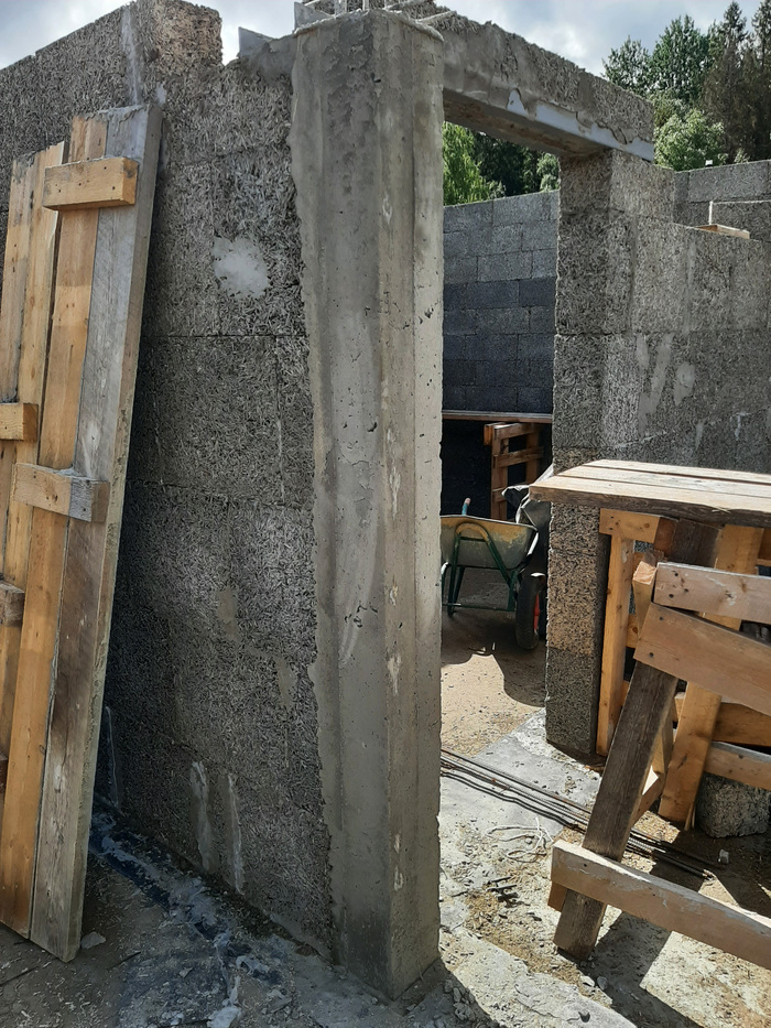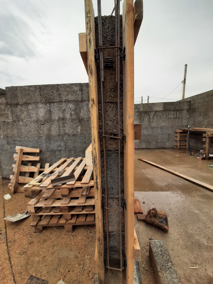 Сейчас начал заливку колонн под трехметровую балку над проемом в центральной стене.