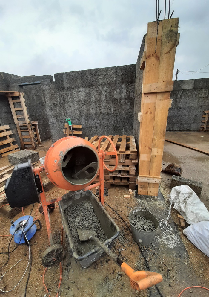 Наемных работников не брал, иногда помогал тесть. Жена сверлила отверстия в опалубке и стягивала стенки проволокой. Вибрировала бетон и разравнивала поверхность.