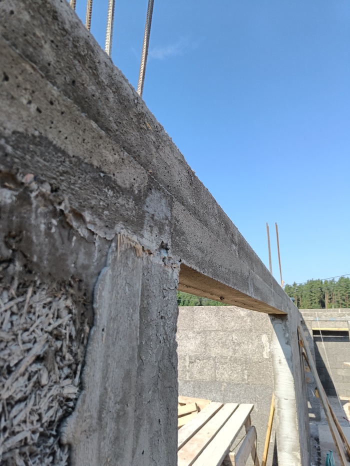 Бетон мешал М450 и укладывал послойно, чтобы избежать каверн как в колоннах.