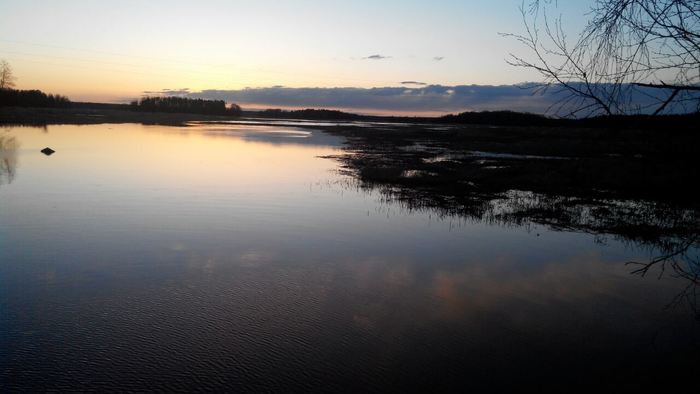 И передо мной как будто стена падает. Я разгибаюсь и вижу природу, красоты неописуемой. Темнеющее чистое вечернее небо над заливом. Солнце пробивается через громады туч уходящие куда-то за лес. Вода серебрится. За камышами рыба в воде плещет, утки летят...