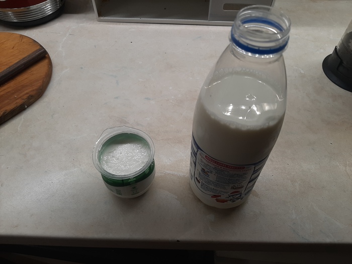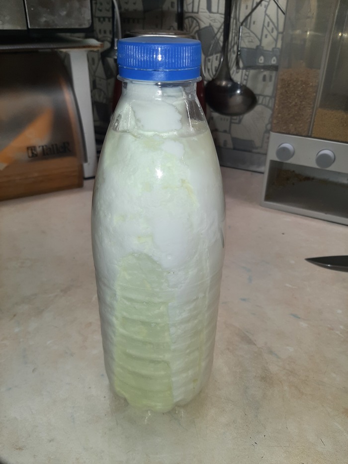 Потом ложку готового йогурта закидываем в следущую бутылку и на батарею. После трех раз закваска начинает кислить и её меняю. Или не начинает и не меняю. Всё.