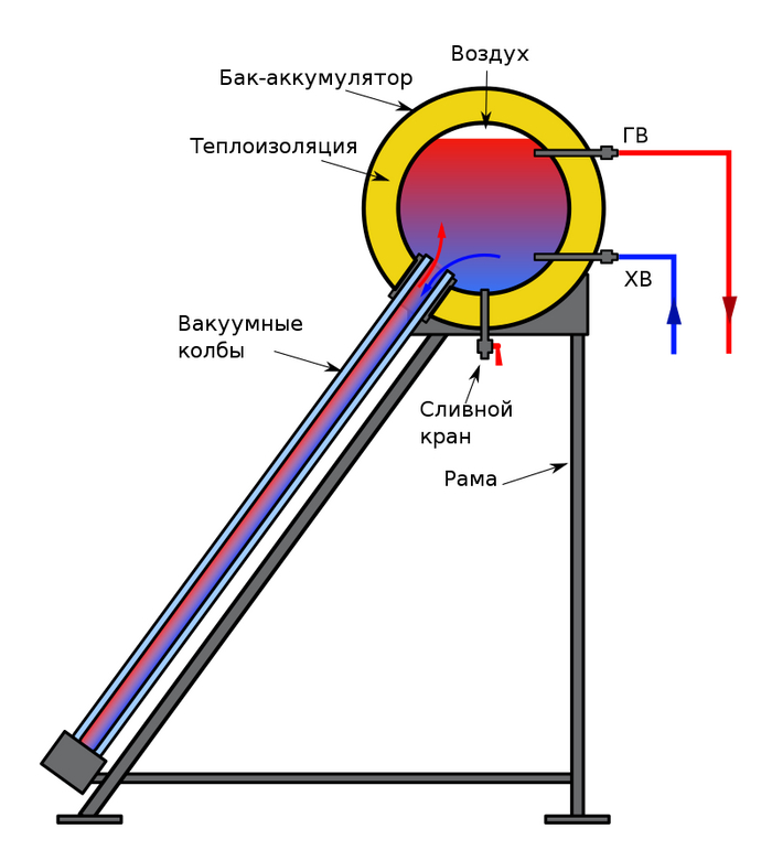 Это не барабан, а емкость для воды. сама конструкция - солнечный водонагреватель. Логика простая - бак нагревают солнечные коллекторы.