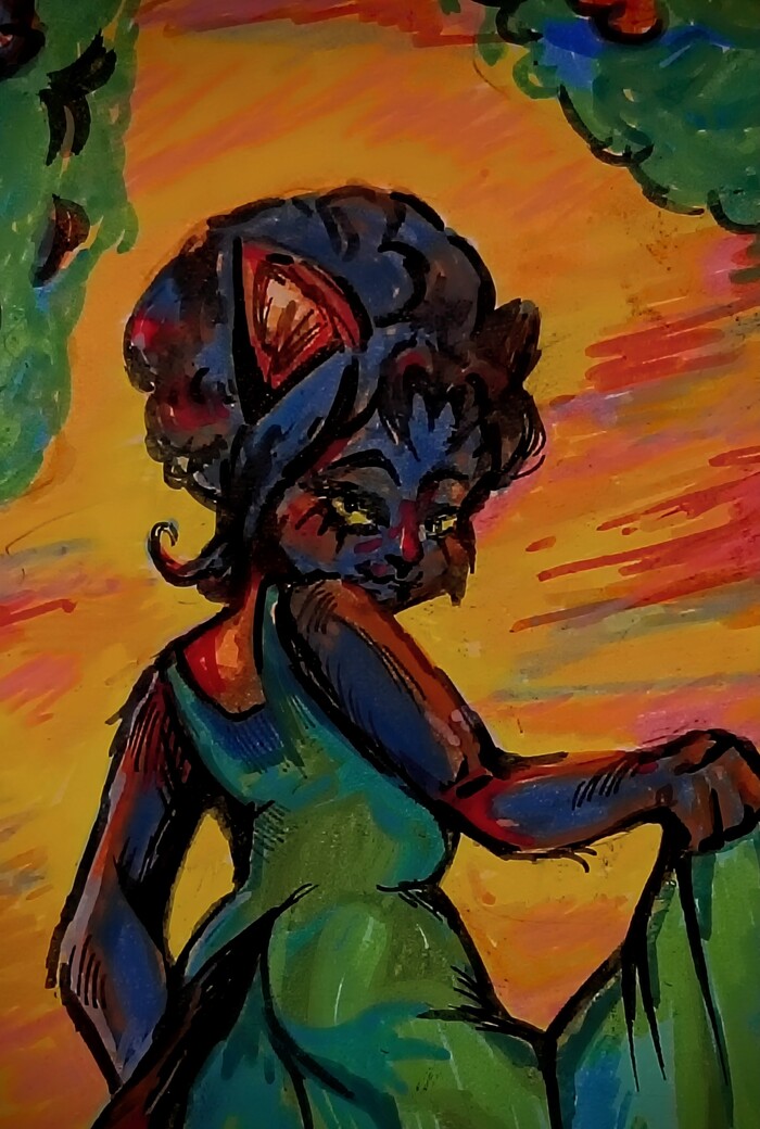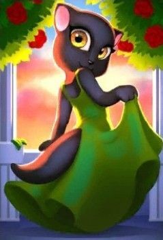 Я лишь ей добавила прическу, чтобы она не смотрелась лысенькой (непривычно было смотреть, как у нее то есть волосы на карточке, то она как привычная кошка из игры) и немного томный взгляд. Полностью арт мне жалко показывать, оставлю для тех, кто хотел бы посмотреть на результат в моем "укромном месте".