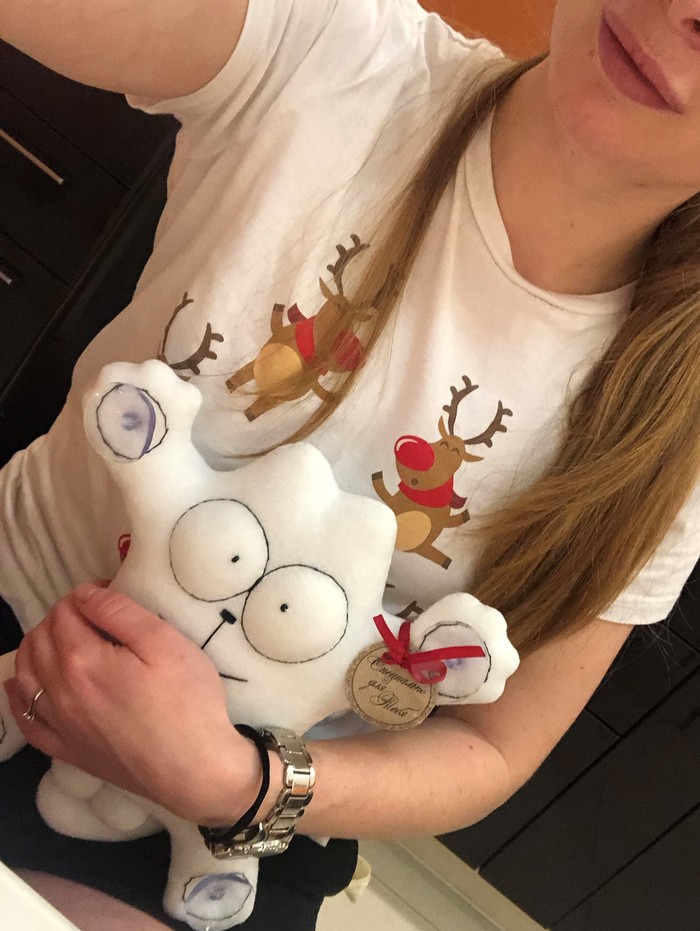 Рассказываю предысторию. Я как-то давно в чужой машине увидела котика, прикрепленного к стеклу. Искала, искала, но не нашла. Нашла выкройку. Приготовилась сшить игрушку, но эта идея была мною заброшена. И я позабыла о том котике. И тут это чудо! Это настоящее рождественское чудо. Как, спустя столько времени, совершенно незнакомый человек, подарил,то что когда-то мне запало в душу?) Иначе, как чудом, это не назовёшь.